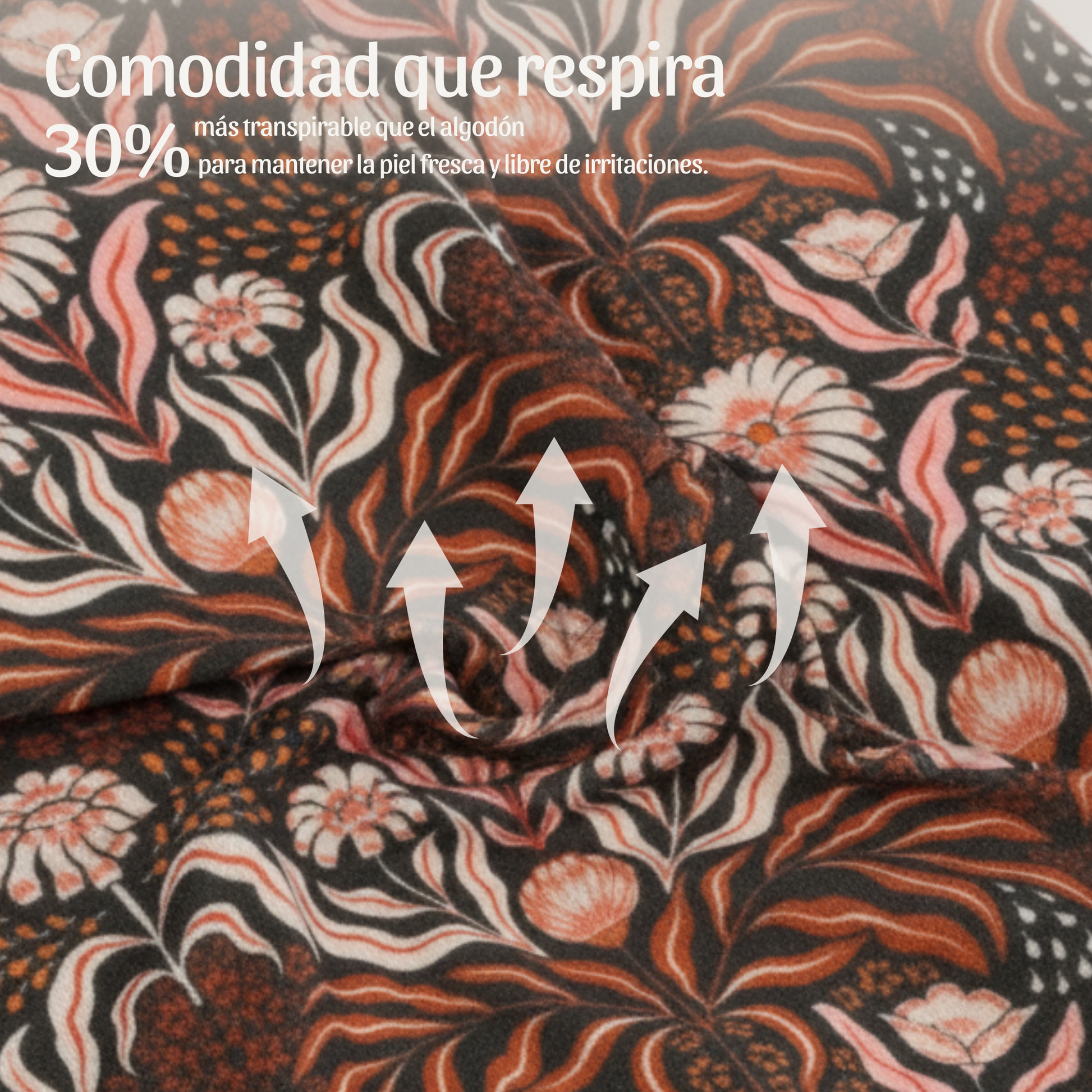 Bambú cultivado de forma sostenible, con fibras de alta calidad que mantienen su suavidad y color lavado tras lavado.